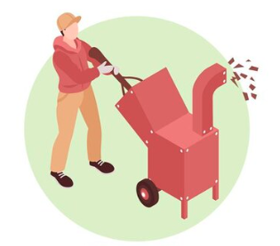 Nous paillons les fruitiers de la ferme à partir des résidus de nos bois de coupe passés au broyeur grâce au matériel partagé de la Coccinelle !